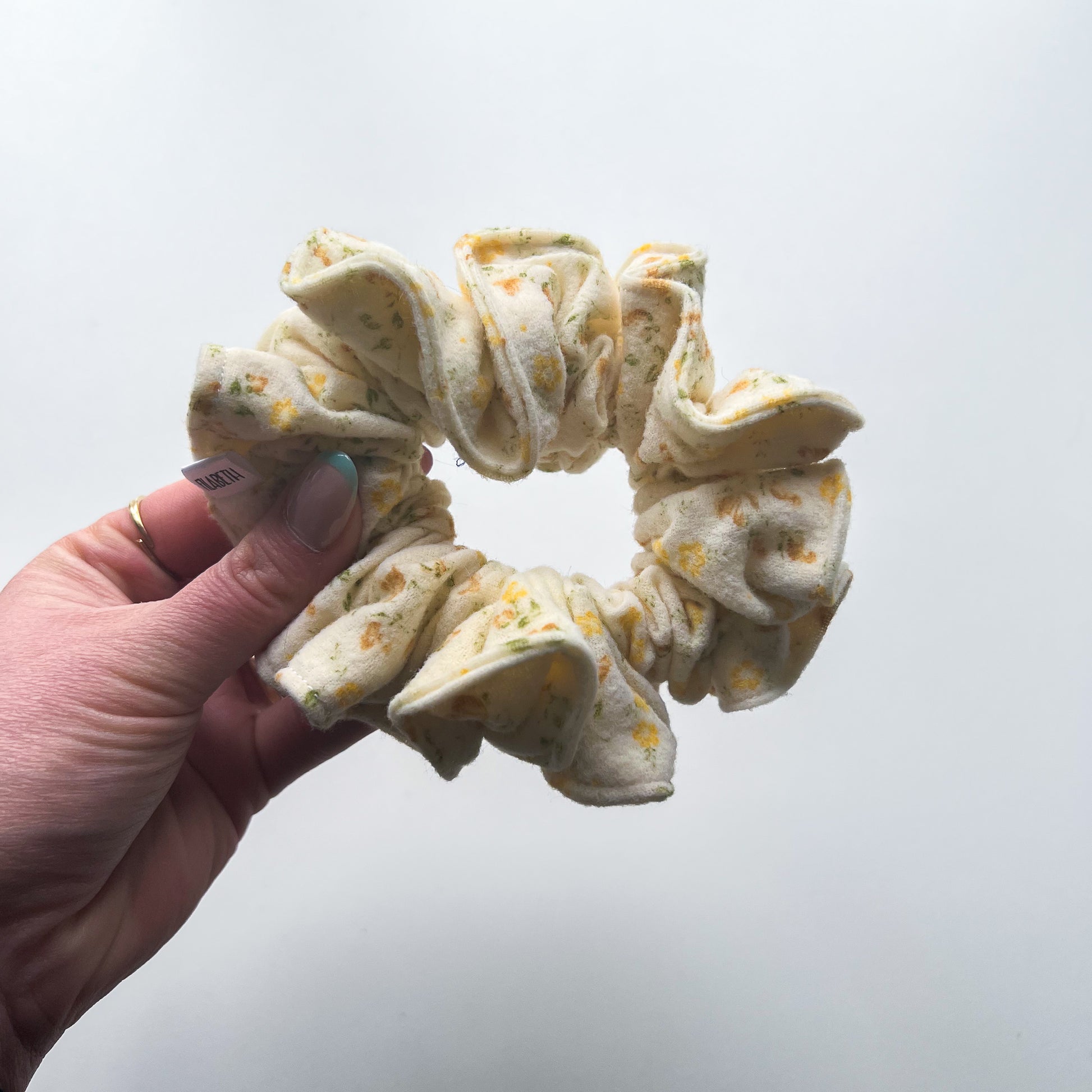 Tissu Recyclé Unique : Chaque scrunchie est fabriqué à partir de tissus recyclés, soigneusement sélectionnés pour leur qualité et leur originalité. Nos tissus en quantités limitées garantissent que chaque modèle est unique et respectueux de l’environnement.