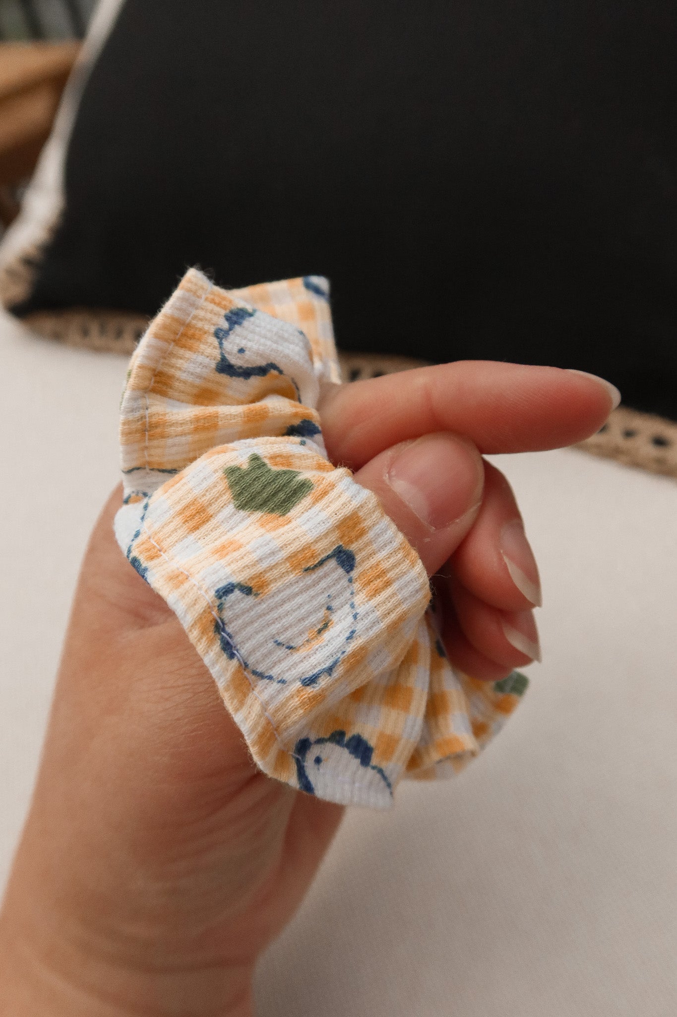 Les tissus de nos scrunchies sont variés et en petite quantité puisqu'ils sont tous faits en tissu recyclé.